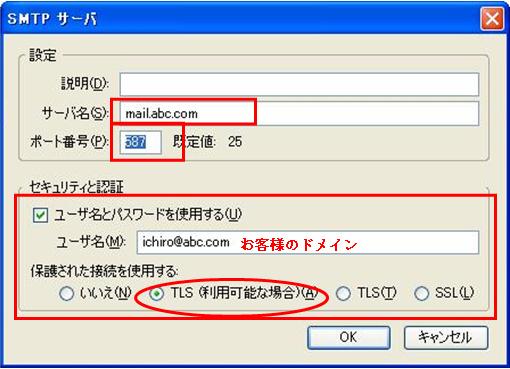 ⑪弊社送信メールサーバにサブミッションポートを設けましたので、送信メール(SMTP)のポート番号を587に変更をお願いします。